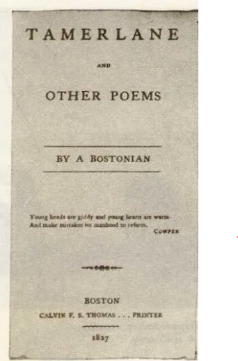 Эта книга вышла в свет в 1827 году и долгое время она была незамеченной. Ни один критик, ни один читатель не хвалили эту книгу, её не продавали в книжных магазинах и не передавалир из рук в руки. Её не читали при свете фонарика, а всё потому что подписана она была незнакомым именем - "Бостонец".