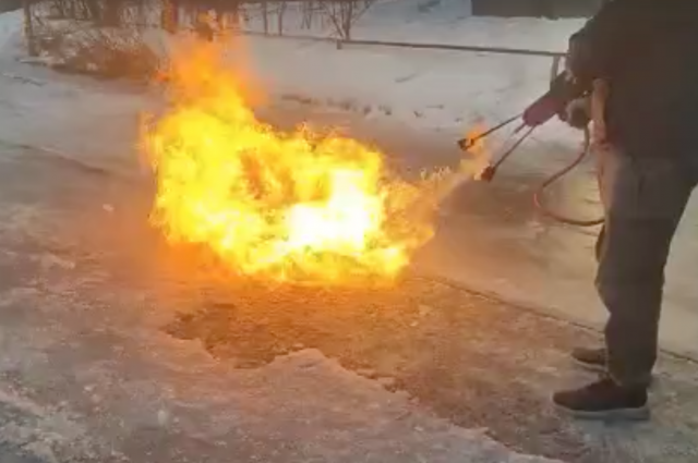 Депутаты в Новосибирске растопили лёд на тротуаре огнемётом