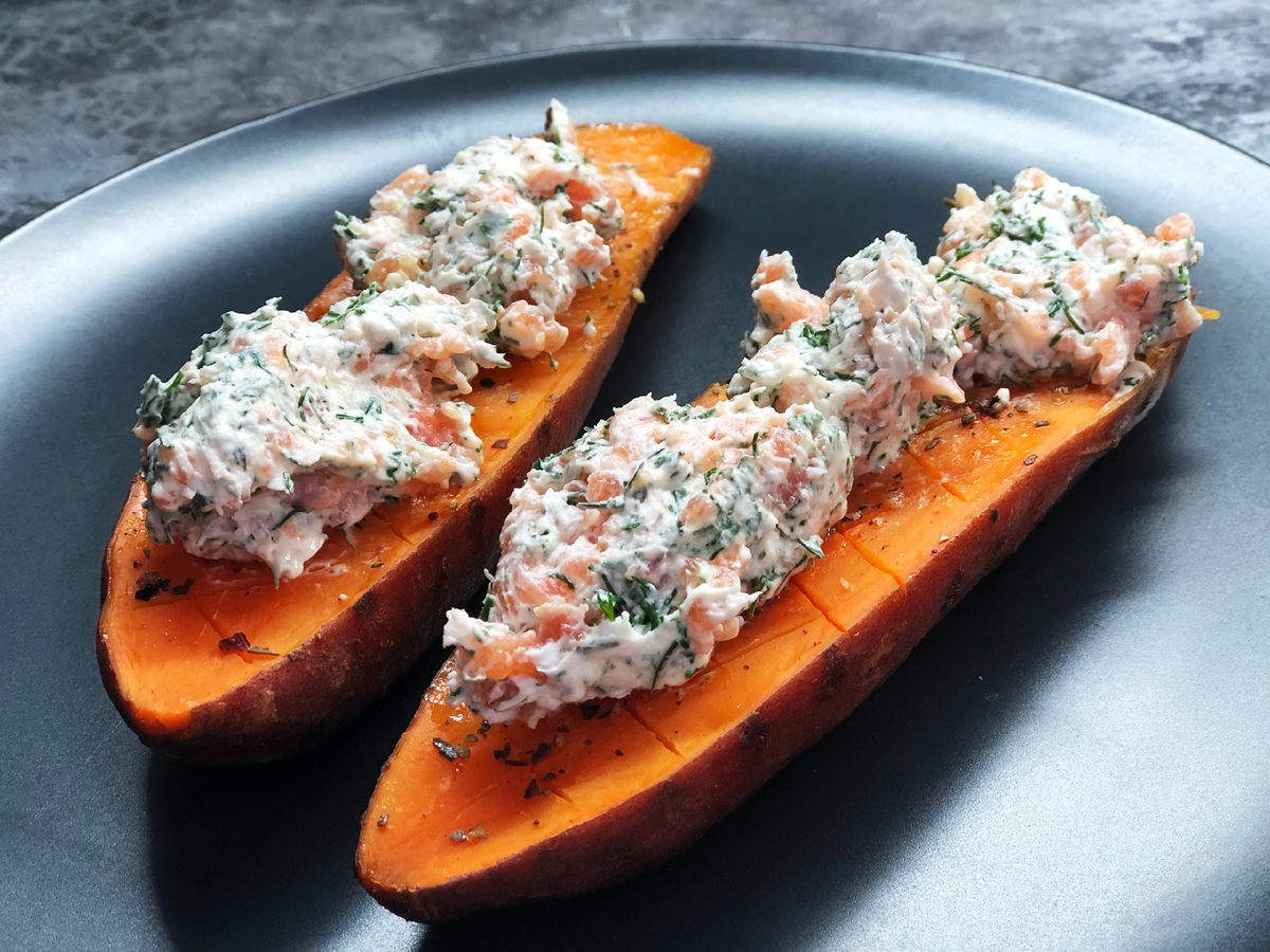 Это, своего рода «Крошка-картошка», только вместо картофеля мы используем батат, т.к. он меньше содержит углеводов, что для питания при диабете критически важно. «Крошка-баташка», так сказать=) Рецепт очень прост и быстр, займет не более 15 минут, не считая времени на запекание батата. Список продуктов: Шаг 1 Первым делом включаем духовку на 200 °С, пусть пока прогревается.