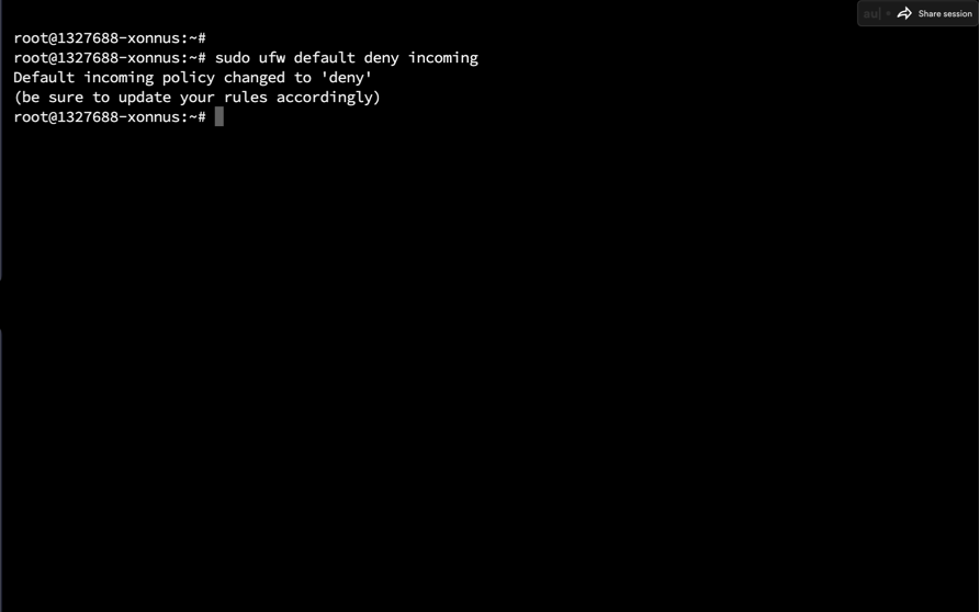 Наш новый VPN сервер находится в интернете, а значит защита должна присутствовать, пусть пока и в базовом исполнении. В Ubuntu есть не плохой инструмент UFW (Ubuntu FireWall). По умолчанию файрволл выключен, для его активации используется команда ufw enable, но при ее выполнении все Ваши соединения которые смотрят в интернет "отвалятся". Для того, что бы этого не произошло, мы сначала сделаем некоторые настройки, а потом его активируем! Для начала запретим все входящие соединения командой А теперь Из предыдущий статьи мы знаем, что у нас работатет L2TP/IPsec сервер, а значит нам надо добавить его порт в разрешения Допустим, что нам этого хватит, тогда на этом мы можем завершить настройку и вернуться к ней в любой момент. НО! Это еще не всё, правила добавлены, но файрволл у нас не активен. Проверить это можно командой sudo ufw status Добавьте описание Для его активации используем команду Сервер нас извещает о том, что ткущее ssh соединение может быть сброшено, продолжить? Жмем Y мы же