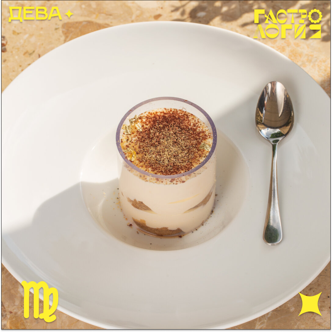 Кажется, я нашла тирамису, которое по уровню перфекционизма может сравниться с Девами. Все должно быть идеально, симметрично, гармонично и из самых лучших ингредиентов. В начале подачи тирамису из il Forno в прозрачном стаканчике без дна именно такой (еще и с золотом), но как только официант поднимает стакан, крем очень эффектно обволакивает савоярди – как и Дева, когда, наконец, расслабляет свою перфекционистскую мышцу в своем самом близком кругу. Цена: 590 рублей