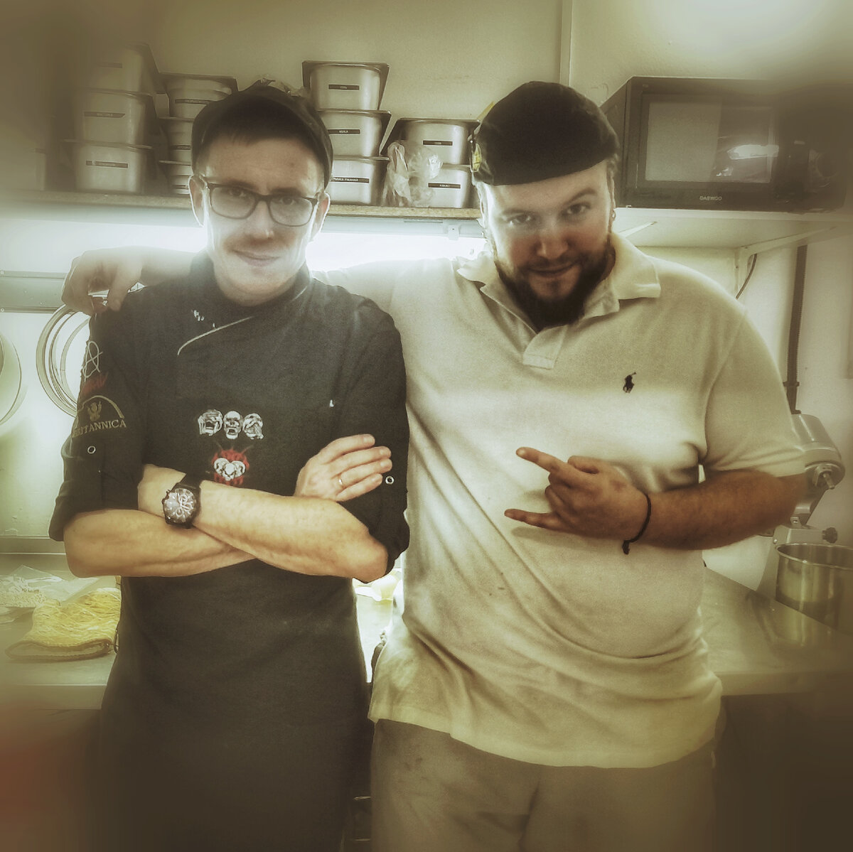Так совпало, что мы с Максом пришли на стажировку в один и тот же день, до того дня я не знал этого добродушного пухлеша. Я стажировался на горячий цех, а он – на раздачу. Макс общительный , обладает превосходным музыкальным вкусом, грамотный и с хорошо развитым чувством юмора. Без последнего на кухне делать нечего. Не знаю как так получилось, но мы с ним стали играть в одну забавную игру, у которой нет названия. Игра заключалась в том , чтобы как можно неожиданней послать "на три веселых буквы" при помощи показа среднего пальца. Главное, чтобы было вообще не ожидаемо , а побеждает тот, у кого по результату в конце смены пропущено больше "факов", если можно так сказать. При чем, можно было применять любые тактики. Со временем мы перестали откликаться, если звали друг друга, потому что при повороте головы в сторону от оклика своего имени , увидишь средний палец и счастливое лицо противника с возгласом счета в ту или иную сторону. Приходилось идти на хитрость. Просить шефа или поваров
