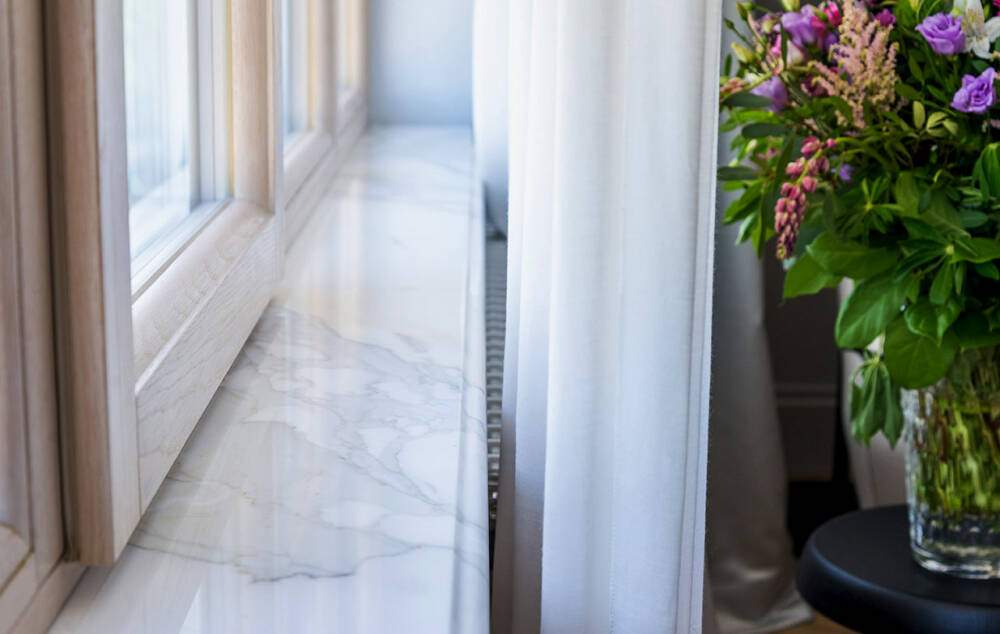 Наконец, литьевой мрамор почти полностью (на 85%) состоит из мраморной крошки. Остальные 15% приходятся на полиэфирную или акриловую смолу. Отличить такой подоконник от мраморного почти невозможно. При этом он ощутимо прочнее натурального и не так боится агрессивной «химии».