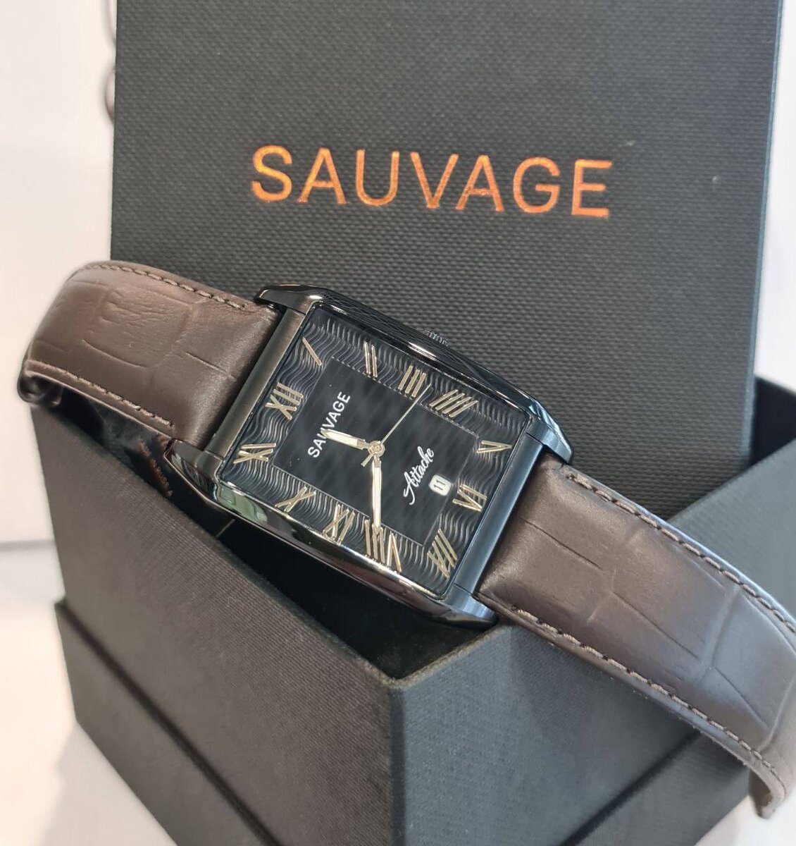 Перед Вами стильная, современная модель SV 3285219 из коллекции "Attache"от часового бренда Sauvage. Корпус часов имеет прямоугольную форму и выполнен в популярном покрытии IP-Black. Выразительным элементом является, хорошо читаемые римские цифры и стрелки в lpg покрытии, которые эффектно выделяются на чёрном гильошированном циферблате. На цифре 6 расположилась аппертура даты. Элегантный образ этой модели дополняет темно-коричневый ремень из натуральной кожи, который будет идеально сочетаться, как с классическим образом,так и с одеждой в стиле кэжуал. Надежный кварцевый японский механизм Miota 2115 Корпус из нержавеющей стали,размер 33×38×11мм. Минеральное стекло. Водозащита 5 АТМ. Производство РФ. Гарантия 2 года. Розничная цена в сети салон часов "LORD" : 14700р.