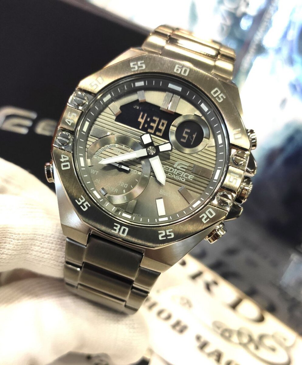 Представляем Вашему вниманию стильный мужской хронограф от японского бренда Casio серии Edifice, модель ECB-10DС-1B.в стальном корпусе графитового оттенка!! Металлизированный циферблат , контрастные стрелки и инверсионный дисплей, высокая технологичность и узнаваемый внешний вид!! Идеальные часы на каждый день для современного мужчины!! Функция Bluetooth для синхронизации со смартфоном. Двойная светодиодная подсветка, облегчающая считывание информации. Функция секундомера - 1/1000 секунд - 24 часа. Мировое время Автоматический календарь Включение/выключение звука кнопок 5 ежедневных будильников Отображение дня недели на русском языке Минеральное стекло Водонепроницаемость 10 ATM Гарантия на механизм 1 год. Розничная цена в сети салонов часов "Lord" 23900 рублей.