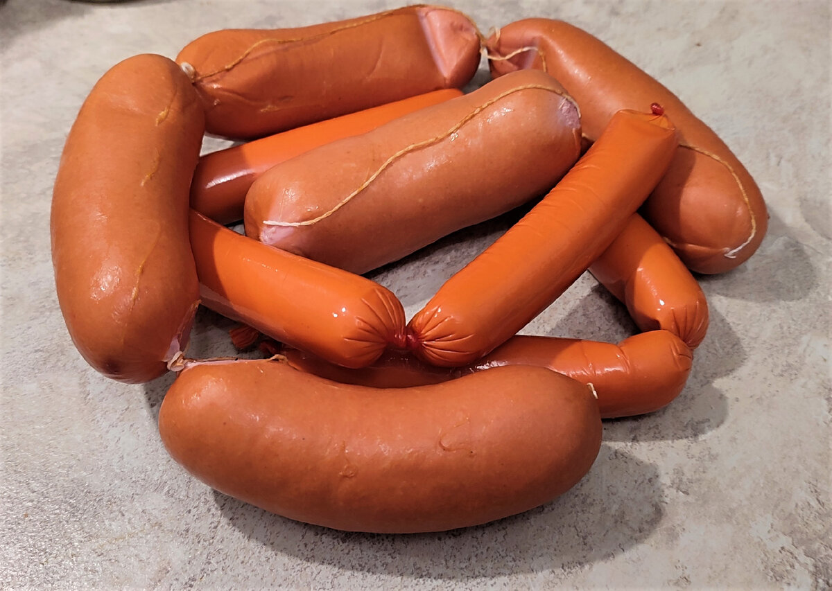 1) Сосиски "Классические" - цена 297 руб. / кг. По информации на сайте изготовлены из мяса птицы и шпика. По цене - нормально, в сетевых магазинах столько стоят самые дешевые сосиски по акции.