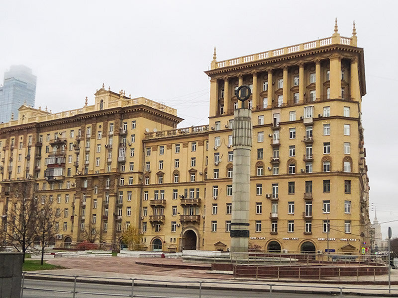 Кутузовский проспект одна из главных магистралей Первопрестольной со множеством достопримечательностей, парадный въезд с запада, крупный ТУ, музей под отрытым небом побед русского оружия. А когда-то здесь располагалась заштатная окраина города, слобода с чумным кладбищем. Интересно, что формирование проспекта происходило не совсем традиционным способом, не от центра к окраинам, а наоборот - с дальних подступов к сердцу Первопрестольной. Его начальная часть, сразу от реки Москвы, была проложена относительно недавно, в середине 20-го века. Маршрут нашей экскурсия пройдет по средней части проспекта, от Третьего транспортного кольца до бывшей Дорогомиловской заставы. жилой дом, построен в 1949 году по проекту архит