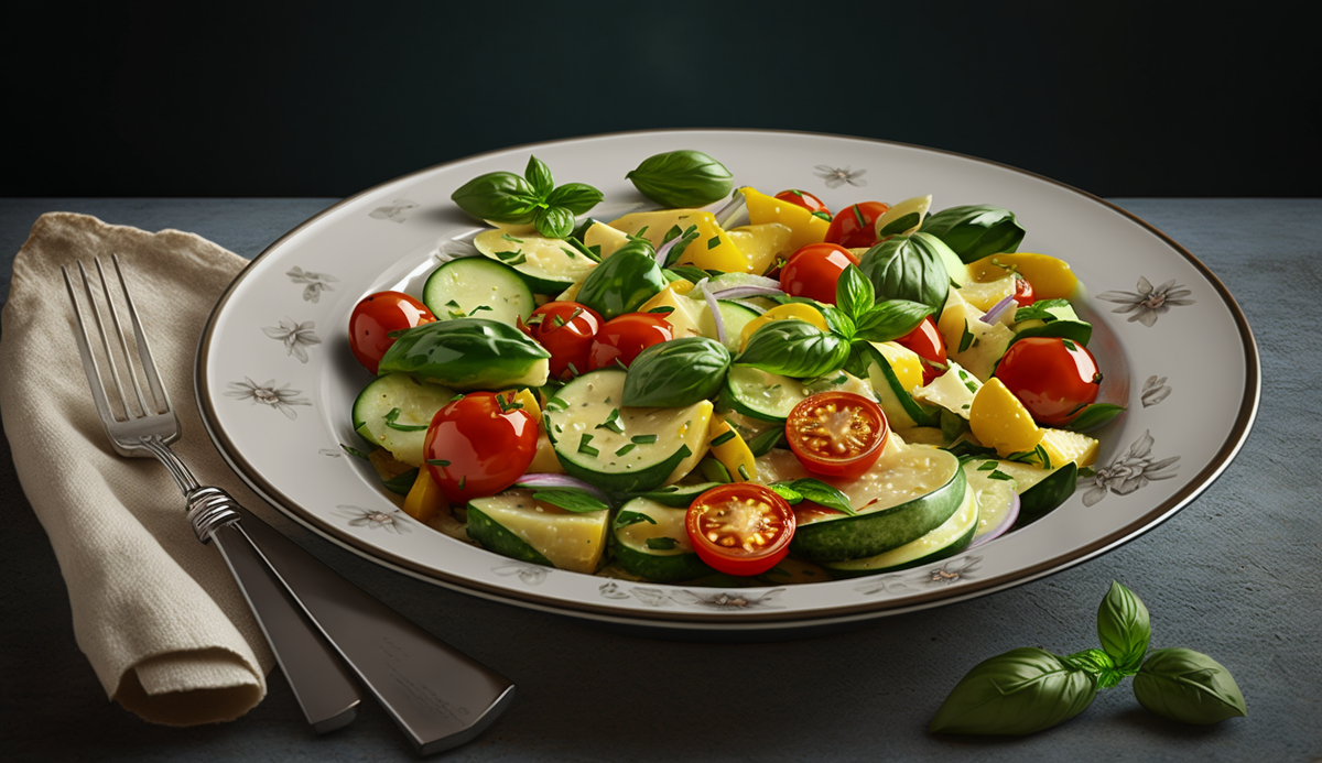 Простой рецепт салата из цуккини, базилика и помидоров черри