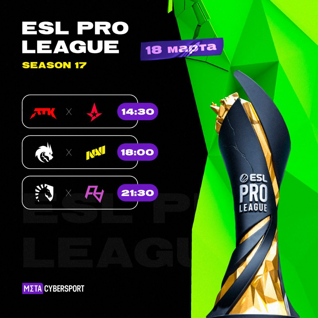 18 марта команды ESL Pro League Season 17 определят третьего участника плей-офф стадии. Стартовое противостояние начнётся в нижней сетке в 14:30 по московскому времени. ATK сыграет с Astralis в матче навылет. В таком же противостоянии столкнутся Team Liquid и Rare Atom. Встреча запланирована на 21:30 по московскому времени. В 18:00 по московскому времени начнётся битва финалистов группы D – Natus Vincere и Team Spirit. В best-of-3 противостоянии команды разыграют слот в плей-офф этапе турнира. ESL Pro League Season 17 проходит с 22 февраля по 26 марта. 32 команды разыгрывают 850 тысяч долларов, а также путёвки на IEM Cologne 2023 и BLAST Premier: World Final 2023.