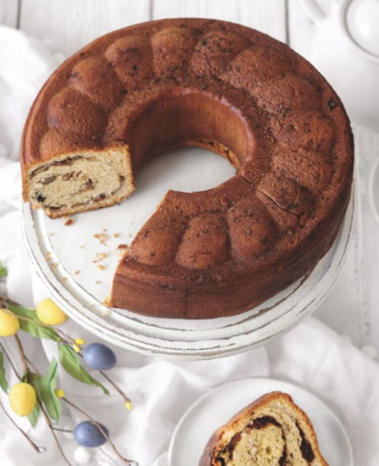 Традиционный кекс в Австрии на Пасху. Давайте вместе приготовим его. Тесто : 🥮дрожжи прессованные- 20г(7 гр сухих) 🥮молоко (1,5-2%)- 250 мл 🥮мука-500 г 🥮соль -10г 🥮сахар коричневый(тростниковый)-75г 🥮яйца куриные -1 шт. 🥮сливочное масло-120г 🥮анис молотый-0,5 ч. л. Начинка: 🥮финики без косточек 50 г 🥮изюм крупный 50 г 🥮коньяк 2 ст. л. 🥮сливочное масло 50 г 🥮сахарный песок100 г 🥮корица молотая 1 ч. л. 🥮грецкий орех 50 г Процесс изготовления : Шаг 1 Для начинки финики мелко нарежьте, смешайте с изюмом, залейте коньяком и оставьте на 1 час. Шаг 2 Дрожжи смешайте с молоком комнатной температуры. Муку смешайте с солью, влейте дрожжевую смесь. Добавьте сахар и яйцо и замесите мягкое тесто. Когда тесто станет гладким, постепенно введите 100 г сливочного масла комнатной температуры. Шаг 3 Переложите тесто в миску, закройте крышкой и оставьте для брожения на 1 час. Обомните тесто и оставьте выбраживать еще на 1 час. Шаг 4 Раскатайте тесто в прямоугольник толщиной 1 см. Смажьт