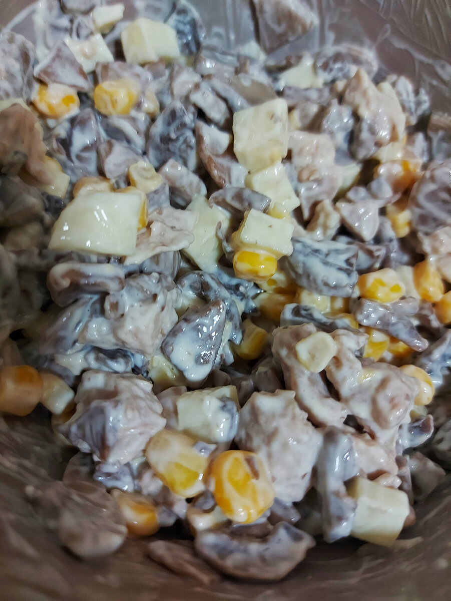 Когда в голову лезет только рецепт "Оливье", этот салатик поможет удивить ваших гостей своим нежным вкусом, а вас - простотой приготовления! Нам понадобится: Куриное бедро без кожи и кости или грудка - 2 шт. Твёрдый сыр - 1/2 упак. Кукуруза - маленькая банка Шампиньоны - 10-15 шт. Майонез - 3 ст.л. Отвариваем куриные бёдра в подсоленной воде около 20 минут. Грибы моем, мелко нарезаем и обжариваем на сливочном или растительном масле до готовности. Подсаливаем их. Нарезаем варёную остывшую курицу. Выкладываем грибы. Нарезаем кубиками твёрдый сыр. Добавляем кукурузу. Перемешиваем. Перед подачей заправляем салат майонезом. Полезный совет: для того, чтобы сделать этот салат безопасным для фигуры, добавьте вместо майонеза сметану или заправку: йогурт+соль+горчица. Приятного аппетита! Готовьте с любовью для себя и своих близких ❤