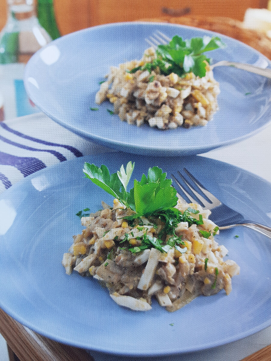 (4 порции) Ингредиенты: 18-20 ШТ. ФИЛЕ АНЧОУСА 1 КРУПНАЯ ЛУКОВИЦА 4 КРУТЫХ ЯЙЦА 2 СТОЛ. Л. СЛИВОЧНОГО МАСЛА 2 СТОЛ. Л. НАРЕЗАННОЙ ПЕТРУШКИ СОЛЬ, ПЕРЕЦ Способ приготовления: Нарезать кубиками «анчоусы», лук и яйца. Обжарить лук в сливочном масле до размягчения, затем добавить «анчоусы» и яйца. Смесь разогреть. Соль и перец добавить по вкусу. Посыпать нарезанной петрушкой и сразу же подать на стол. Лучше всего с хлебом из непросеянной муки и стаканом пива. Приятного аппетита
