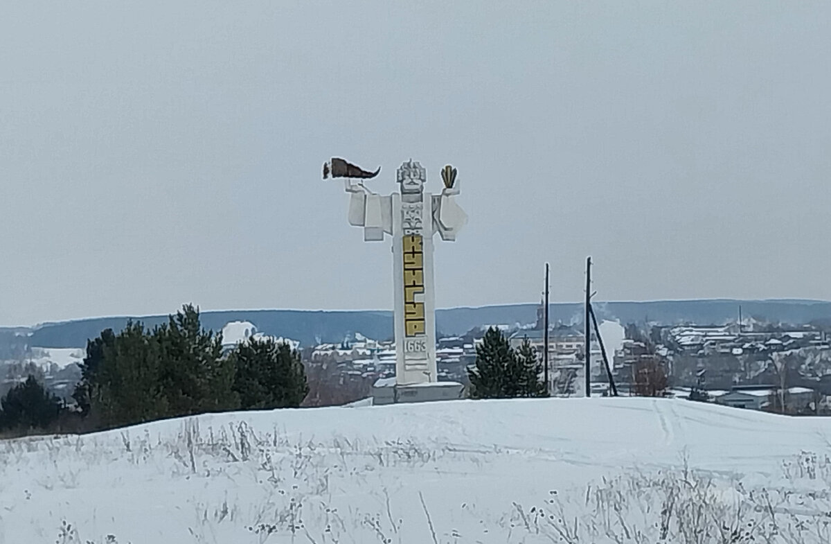 Итак, вот такой богатырь встретит вас на въезде в Кунгур со стороны Перми: