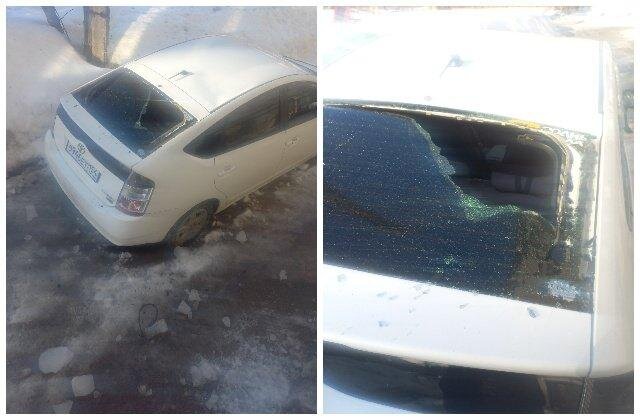 Лёд упал с крыши на стекло автомобиля в Новосибирске. Около дома №13 по улице Грибоедова в Новосибирске глыба льда упала с крыши здания на автомобиль и пробила ему заднее стекло. Об этом сообщили очевидцы в группе «АСТ-54» Вконтакте. Как сообщает автор публикации, лёд упал на машину в месте, где часто ходят люди. Потенциально он мог точно также упасть на человека и нанести серьёзные травмы. Когда очевидец обратился в управляющую компанию, по его словам, там к инциденту отнеслись спокойно. «Будто каждый день такое происходит. Типа, если убило бы, тогда бы и говорили с уважением. К слову, над средним подъездом надо вообще ставить козырёк. Люди выходят вправо, тем самым вообще не защищены от падения сверху сосульки, льда и снега», — рассказывает автор публикации. Ранее Сиб.фм сообщал, что 69-летняя пенсионерка упала на льду перед поликлиникой №1 в Новосибирске. Муж с трудом поднял её: ему помог проходящий мимо молодой человек. После этого супружеской паре пришлось преодолеть 10-метровую л