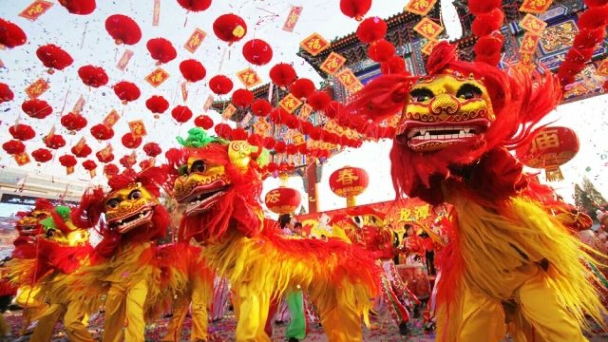 В Китае Новый год называют праздником весны - Чуньцзе. Он не имеет фиксированной даты - точное число каждый раз определяется согласно лунным фразам. Китайцы празднуют наступления нового года до двух недель. Количество людей на улицах и в транспорте в эти дни резко возрастает: китайцы спешат съездить в гости к живущим далеко родственникам. В новогодние праздники у китайцев под запретом уборка, поэтому дома приводят в порядок заранее, как и закупаются подарками. Нельзя также пользоваться острыми предметами, ломать вещи, ссориться, брать или давать деньги в долг. За сутки до Нового года дом украшается гирляндами, на улицах развешиваются традиционные красные фонарики. Традиционный для праздника красный цвет означало изгнание монстра Нянь. Согласно преданию, в древности к людям в первый день Нового года приходило чудовище Нянь и пожирал запасы еды и домашних животных. Случалось и так, что он нападал на жителей Китая, желая съесть маленьких детей. Но однажды люди увидели, что существо испуг