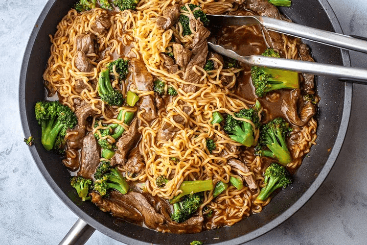 Рамен с говядиной и брокколи, обжаренный во фритюре. Входит в топ-10 лучших блюд азиатской кухни
