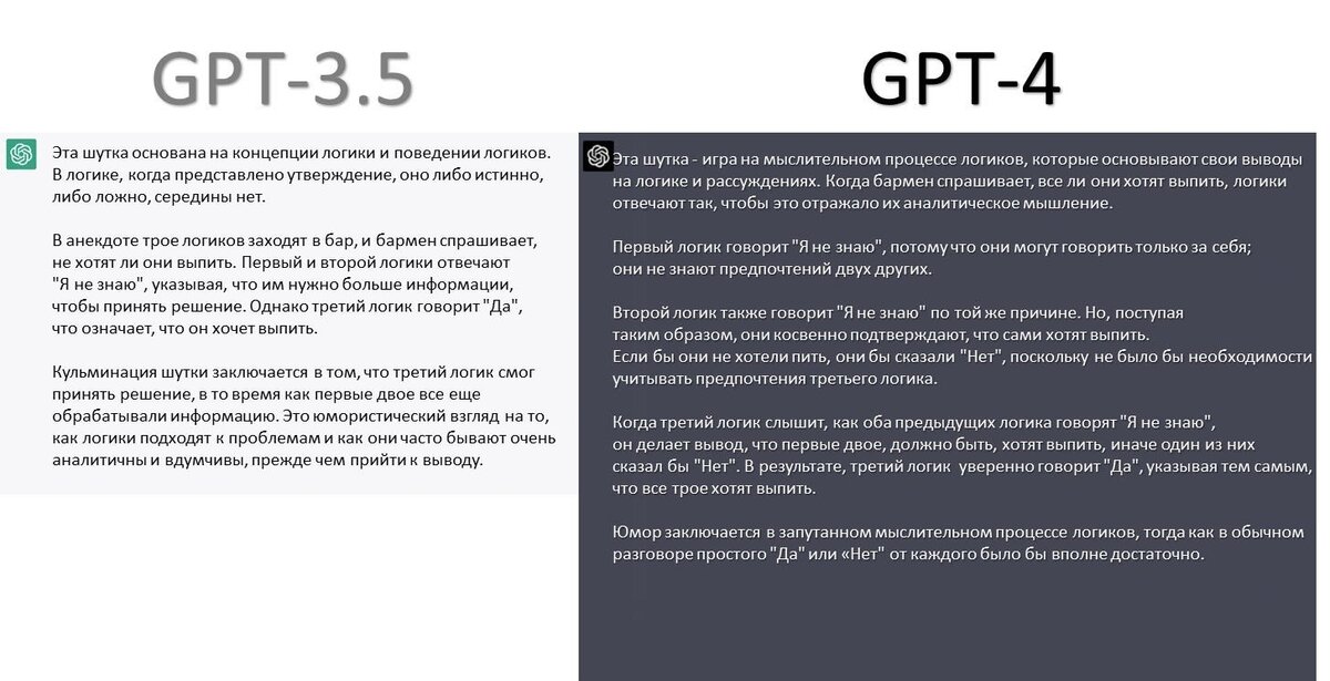 Теперь попросите модель GPT-4 объяснить в чем соль этой задачи-шутки (объяснение на картинке справа).