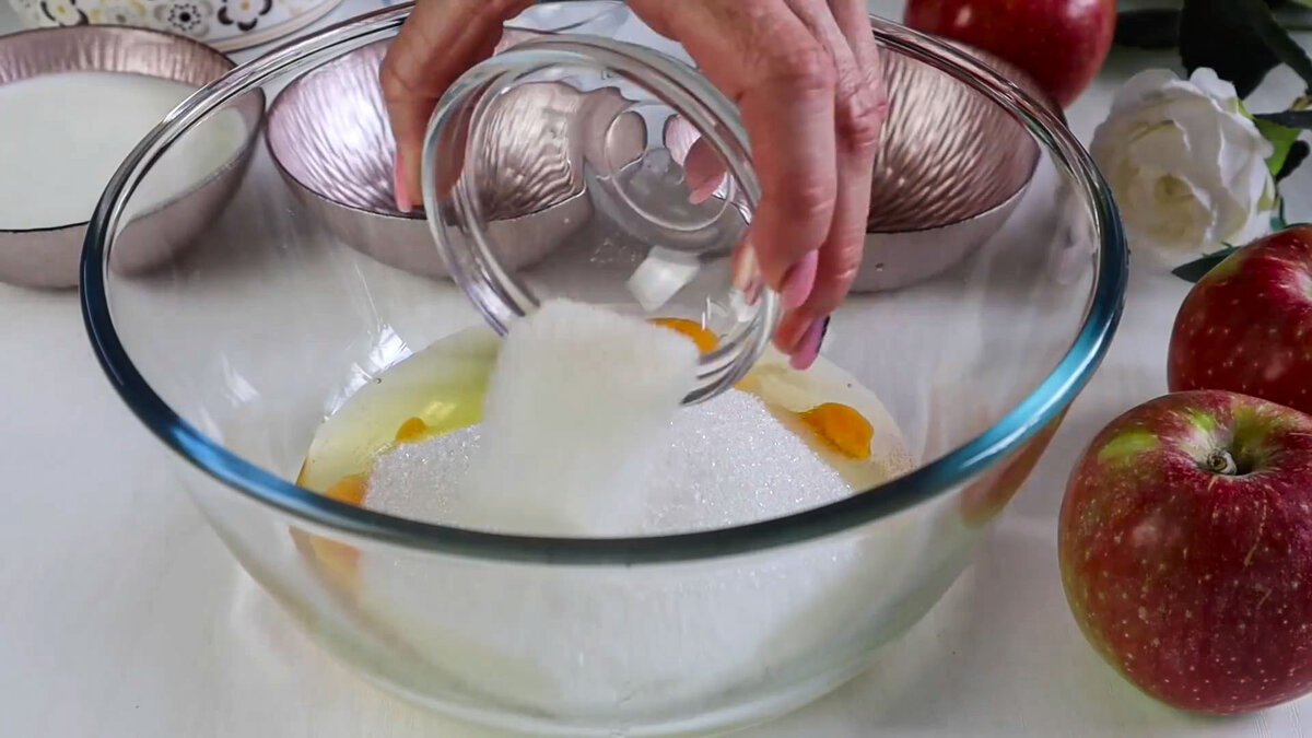 Всем привет! Меня зовут Елена и я рада Вас приветствовать на своём канале. Сегодня я хочу предложить вам простой и очень вкусный яблочный пирог. Пирог с яблоками на кефире просто тает во рту. Приготовим пирог: В миску кладём яйца 3 шт., щепотку соли, сахар 200 г., и ванильный сахар 10 г. Взбиваем миксером примерно 3-5 минут. Далее добавляем кефир 2,5% 150 г, растительное масло 80 г, разрыхлитель 2 ч.л. и просеиваем 280г муки. Взбиваем всё миксером до однородности. Яблоки 800-1000г очищаем от кожуры, нарезаем кубиками и добавляем в тесто. Перемешиваем. Тесто выкладываем в форму с пергаментом на дне (у меня 24см). Сверху украшаем тонкими дольками яблок. Выпекаем 40-45 минут при температуре 180 °C. Можно посыпать сахарной пудрой. Наш яблочный пирог готов. Желаю Вам приятного аппетита и отличного настроения! Ингредиенты: Подписывайтесь, пишите комментарии, делитесь с друзьями и не забывайте ставить лайки 👍