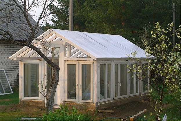 Сейчас многие меняют старые деревянные окна на пластиковые, поэтому вы можете дешево купить никому не нужные рамы, получить их бесплатно или использовать свои, если сами меняли окна. То есть найти необходимый материал несложно. С чего начать строительство теплицы? Прежде чем приступить к сооружению теплицы, нужно выбрать место, где она будет располагаться. Конечно, во многом это зависит от особенностей конкретного дачного участка. Лучше если теплица будет расположена в поле зрения. Также важна освещенность выбранного места и его защищенность от резких порывов ветра. Теплица из старых оконных рам получается недорогой по стоимости. А если готовые рамы у вас уже есть, то, можно сказать, почти бесплатной. Прослужит такое строение не один год и уж точно гораздо дольше, чем теплица из полиэтиленовой пленки. Соорудить теплицу из оконных рам можно и самостоятельно. Для этого достаточно иметь умелые руки и, желательно, чертеж теплицы из оконных рам. Первое, что стоит сделать при строительстве т