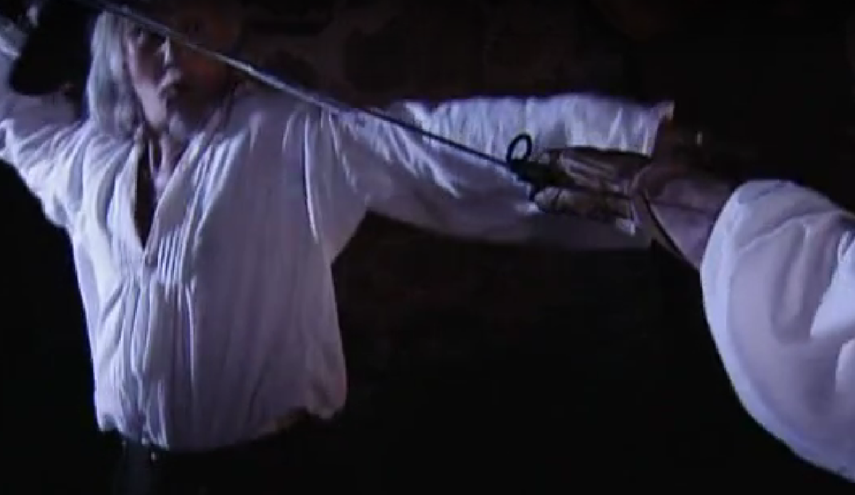 Собственно, некий вариант этого мы и имеем в фильме. Слегка переработанный постановщиками фехтовальных сцен, поскольку описание в тексте... Гмм... не вполне точно ))