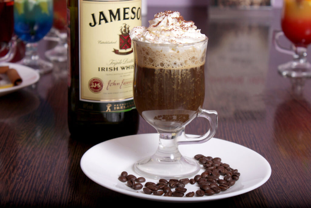 Кофе по-ирла́ндски» — кофейный напиток, который относят в категорию коктейлей со сливками, на основе ирландского виски, чёрного кофе, взбитых сливок и коричневого сахара. Входит в число официальных коктейлей международной ассоциации барменов (IBA), категория «Современная классика» Классический рецепт В результате должны получиться черный и белый слои с четкими границами. Ирландский кофе с огоньком Холодный рецептПравить