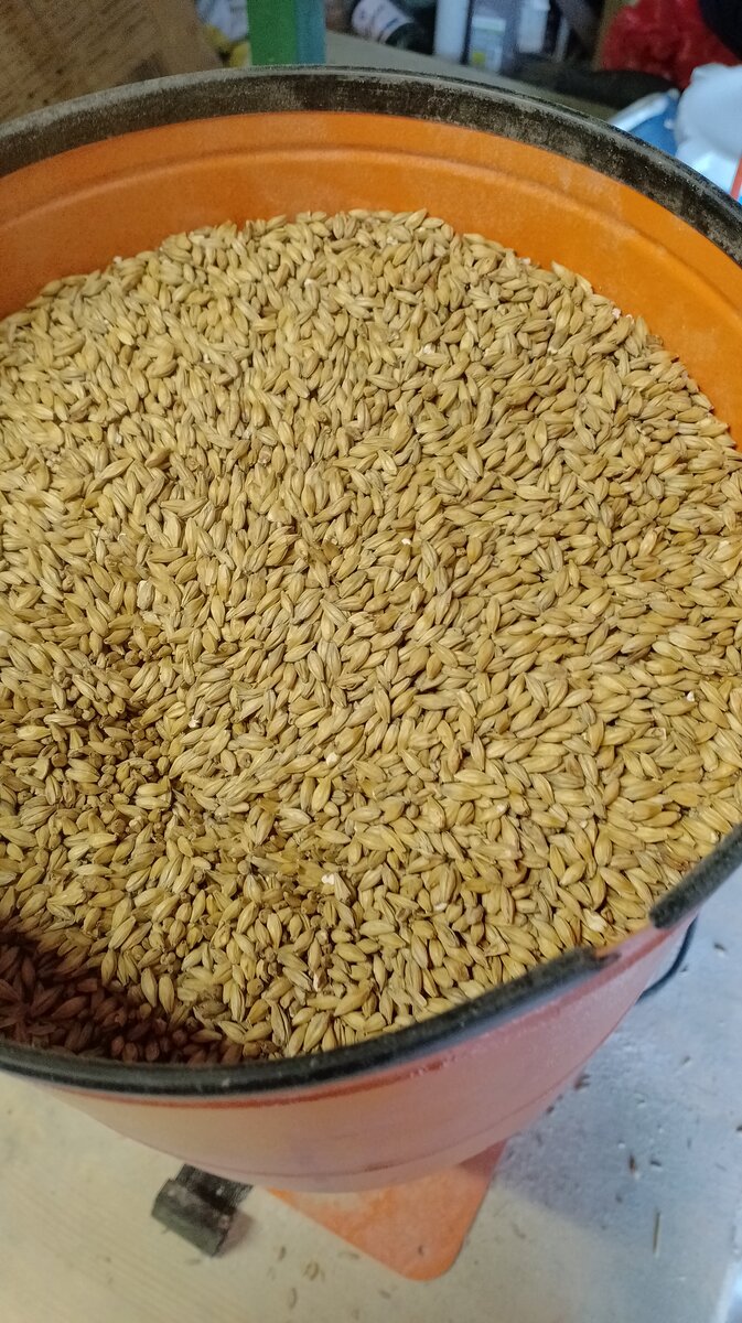 Добрый день. Вот так незаметно мы и подошли к приготовлению дистиллятов из ячменного солода. Моего самого любимого. Так как тратиться на его приготовление, физических и нервных затрат минимум. Единственно что цена рванула на солод, до некультурных горизонтов. Во крупных винокурнях солод молят до состояния крупно зернистой муки. Так как единственная цель винокура, получить максимальный выход преобразовывая крахмал в легко сбраживаемые сахара. Я молю на обычной фермерской дробилке, с минимально открытой щелью. Сбраживаю сусло в бочке с герметично закрытой крышкой. Использую без звучный водяной затвор, в который наливаю джин, собственного приготовления. Бочку и крышку перед заливкой сусла обрабатываю дезинфицирующим средством.Итак, я заливаю в свой 35-литровый куб 25 литров воды и довожу её до температуры 67 гр. Засыпаю в куб 5 кг молотого солода. Температура падет до 65 гр. В течение часа я включаю газ, перемешивая сусло, доводя его температуру до 66 гр. Куб не утеплён, поэтому зимой нуж