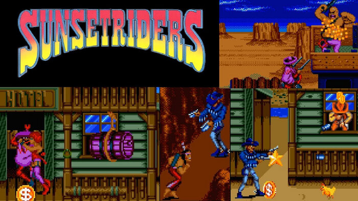 Всем привет. Сегодня я хочу рассказать об одной из лучших игр на консоли Genesis - Sunset Riders. Эта игра разработана компанией Konami и была выпущена в 1991 году. История разработки игры была довольно долгой. Компания Konami изначально планировала выпустить ее только на аркадных автоматах, но затем решила портировать ее на домашние консоли. В итоге игра вышла также на Genesis, а позже и на SNES. Игра представляет собой RunAndGun шутер, в котором игроки берут на себя роль охотников за головами в Диком Западе. Персонажи должны пройти через несколько уровней, убивая врагов и собирая бонусы и улучшения. В Genesis версии улучшения собираются из мешков: Также их можно найти в отелях/салунах/барах после поцелуя барышни. Бонусы же можно получить только из мешков, они в виде звезд. Бонус-уровни выглядят следующим образом: Здесь вы должны мчаться за повозкой, стараясь собирать монеты, добавляющие очки, а также жизни. В Genesis версии сюжет, судя по всему, таков: двое бравых парней - Билли и Ко