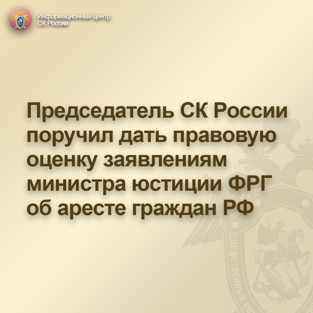 Председатель СК России поручил дать правовую оценку заявлениям министра юстиции ФРГ об аресте граждан РФ