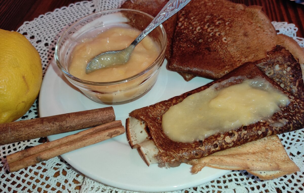 Как надоела зима. Холодно и снег. Что хорошо согревает в зимнюю стужу? Конечно блины! В меру сладкие, со вкусом и запахом лимона — с лимонной намазкой. Она готовится очень быстро, вкус — восхитительный! Ингредиенты Время приготовления: 25 минут. Приготовление Для начала вымоем лимон в горячей воде. Нарежем его дольками и вынем косточки. Переложим лимон в миску и перетрем блендером до однородного пюре. Чтобы работа шла быстрее, добавим сахар — так перетереть легче. К лимонному пюре добавим масло. Перемешаем до однородного состояния. Я это делала также блендером. Затем добавим в смесь сырое яйцо и опять тщательно перемешаем. Поставим на огонь и при постоянном помешивании нагреем до бульков, но не кипятим. Снимем с огня, добавим молотую корицу. Переложим смесь в баночку и уберём в холодильник, для того чтобы она застыла. Через пару часов можно наслаждаться блинами с лимонной намазкой. Намажьте это немедленно!!!