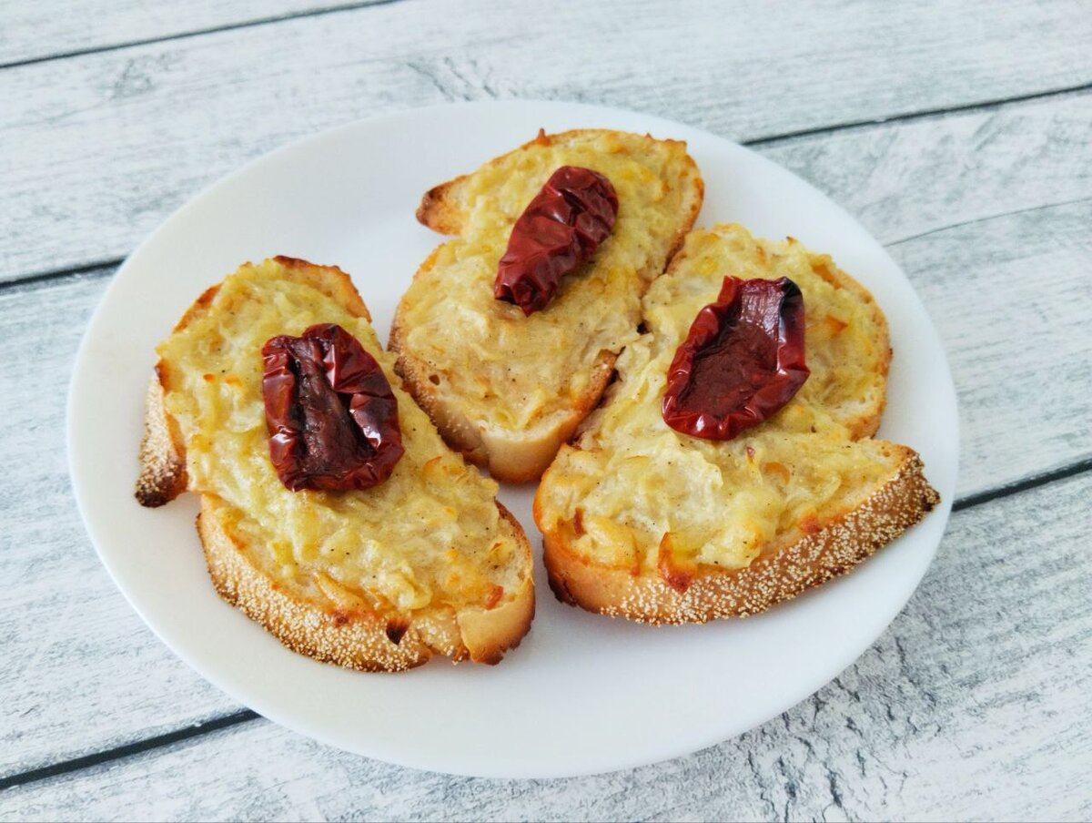 Эти бутерброды еще называют "студенческими", потому что готовятся они из самых простых и недорогих продуктов. В студенческие годы мне повезло жить с родителями и об этом рецепте узнала я значительно позже. Несмотря на простоту и бюджетность блюдо это очень вкусное и можно без стеснения подавать такие горячие бутерброды гостям или поставить на праздничный стол - нравятся они абсолютно всем! Есть несколько вариаций этого рецепта, я готовлю так: 2 средних луковицы нарезаю мелким кубиком и обжариваю на смеси растительного и сливочного масла до прозрачности, в конце добавляю столовую ложку муки, соль и перец по вкусу и жарю еще пару минут. Пока обжаривается лук взбиваю 1 яйцо и добавляю к нему немного любого натертого сыра. Можно и без сыра, бутерброды же "студенческие", но с ним конечно вкуснее. Обжаренный лук перемешиваю с яично-сырной смесью и выкладываю на нарезанный батон или хлеб. Отправляю готовиться в духовку при температуре 180 градусов минут на 10 до зарумянивания. В этот раз я ре