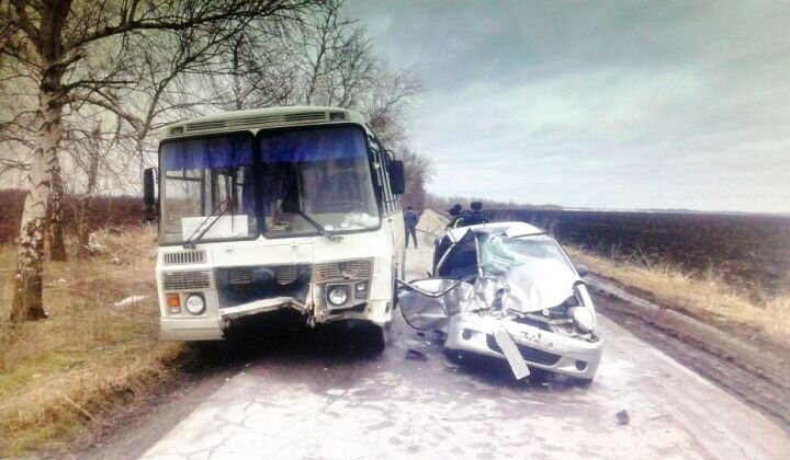 Легковушка протаранила автобус в Воронежской области