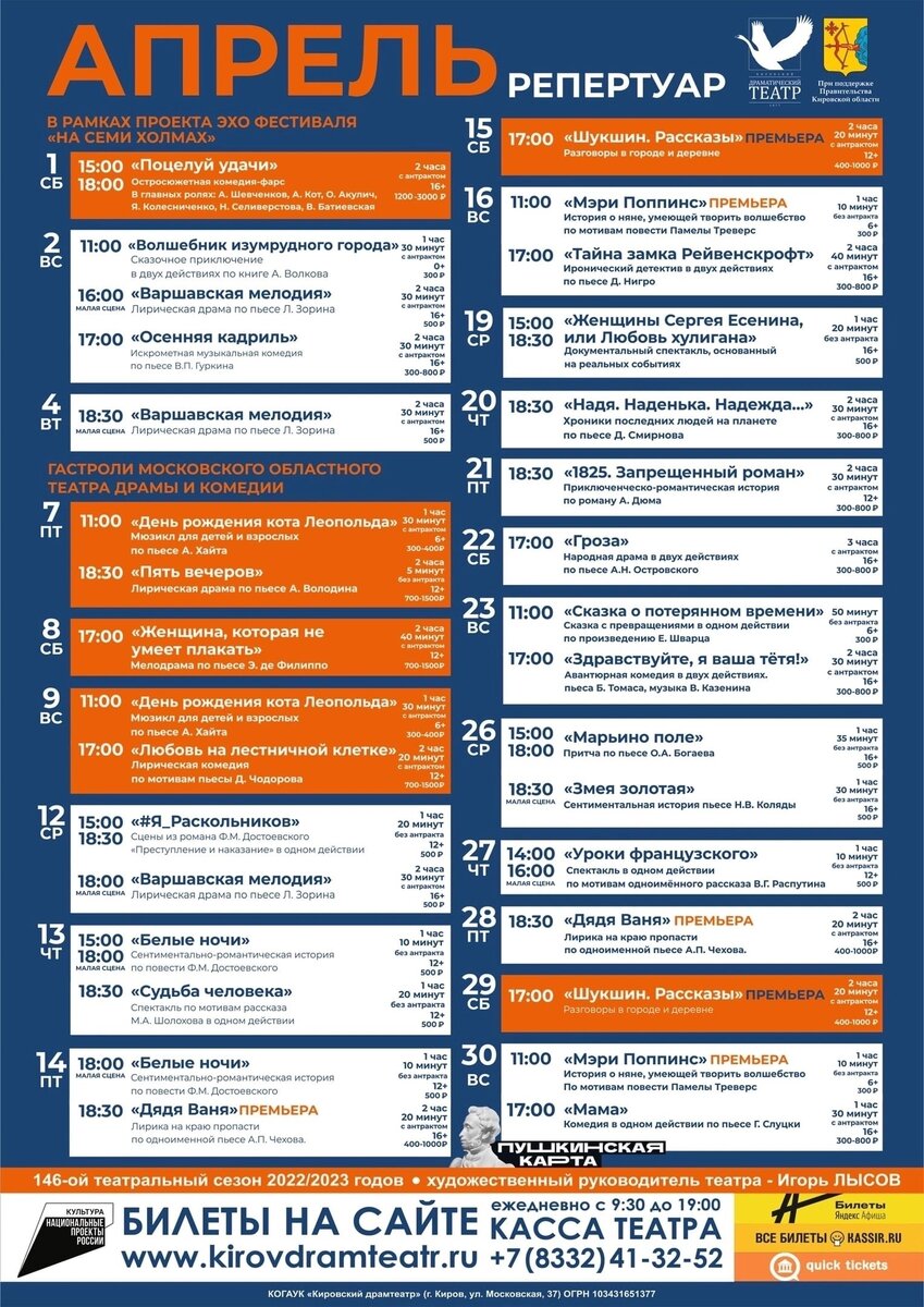 БИЛЕТЫ УЖЕ В ПРОДАЖЕ! ЖДЁМ ВАС В КИРОВСКОМ ДРАМТЕАТРЕ!