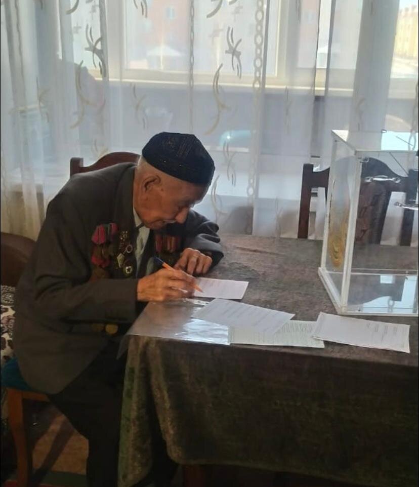Солтүстік Қазақстанда бүгінгі күні 8 Ұлы Отан соғысы ардагерінің көзі тірі. Қарт майдангерлер де сайлауда белсенділік танытып жатыр. Солардың қатарында Қожатай Некібаев та бар. Ол үйде отырып дауыс берді, деп хабарлайды Qazaqstan Media тілшісі. 17 жасында сұрапыл соғысқа аттанып, Венгрия мен бұрынғы Чехославакия елдерін жаудан азат етуге қатысқандардың бірі – Қожатай Некібаев. Жауынгер қанды майданнан 1948 жылы оралып, саналы ғұмырын ұстаздыққа арнады. Ол осы күнге дейін белсенді азаматтық ұстанымын көрсетіп келеді. «Елімізде тиыштық, бірлік, бейбітшілік заман болсын. Осындай сайлауларда біз әрқашан дауыс беруге дайынбыз. Депутаттарға абыройлы еңбек етуге тілектеспін», – дейді ҰОС ардагері Қожатай Некібаев. Қожатай Некібаев бұған дейін сайлау учаскесіне өзі барып, таңдау жасайтын. Бұл жолы үйден дауыс беріп жатыр. Қожатай Сейітахметұлы 97 жаста. Майдангер 10 баладан 25 немере мен шөбере сүйіп отыр. «Біз №611 учаскесінен келіп тұрмыз. Онда жалпы 2121 сайлаушы тіркелген. Оның ішінде 11-
