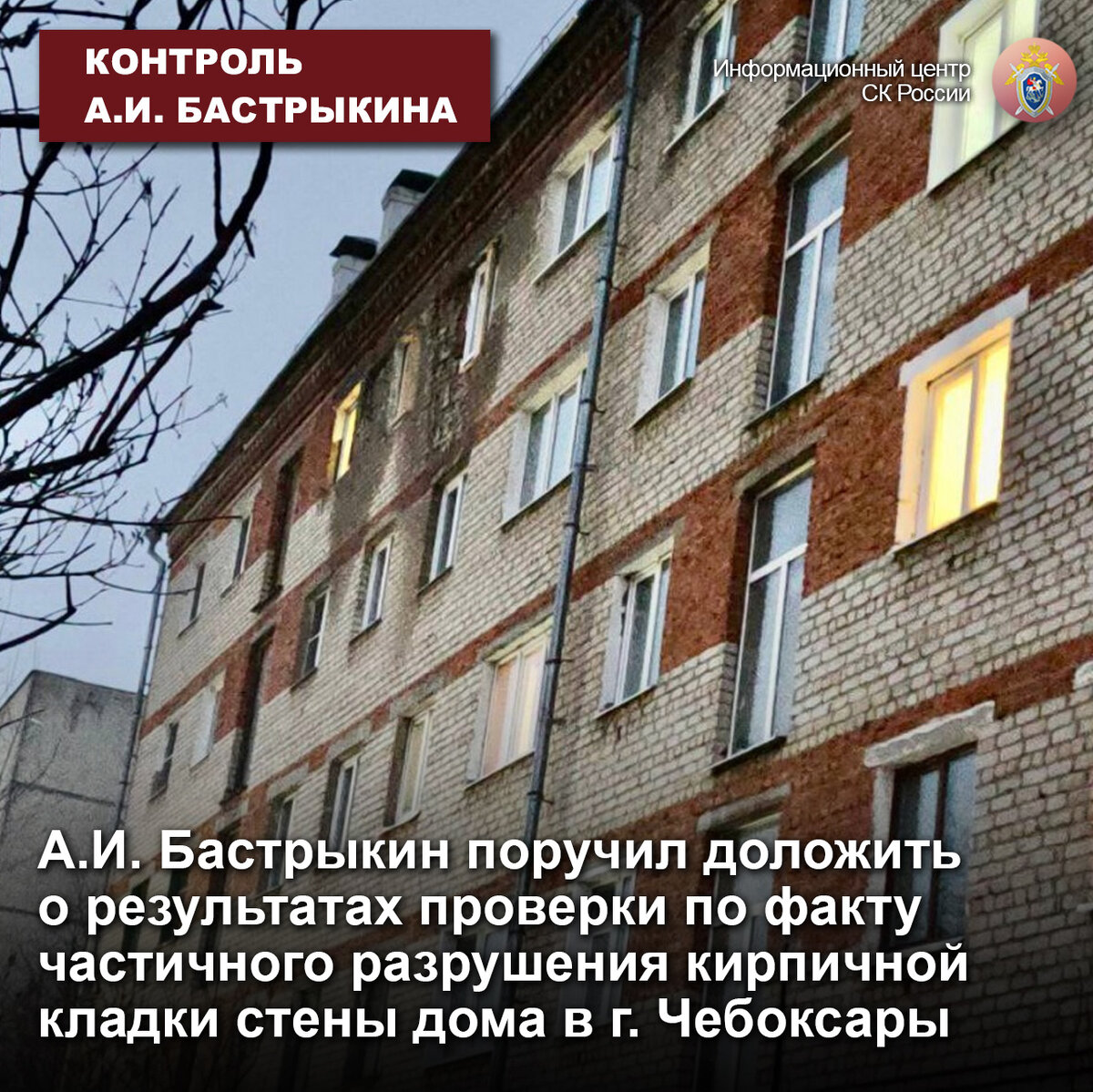 А.И. Бастрыкин поручил доложить о результатах проверки по факту частичного разрушения кирпичной кладки стены дома в г. Чебоксары
