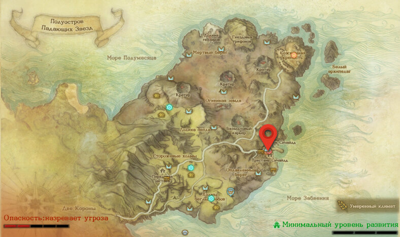 Локация тоже разделена по зонам для каждой фракции, но не защищена стражей. Из особенностей можно выделить башню, которая немедленно завершает событие для союза, если уничтожается монстрами или игроками из вражеской фракции.
