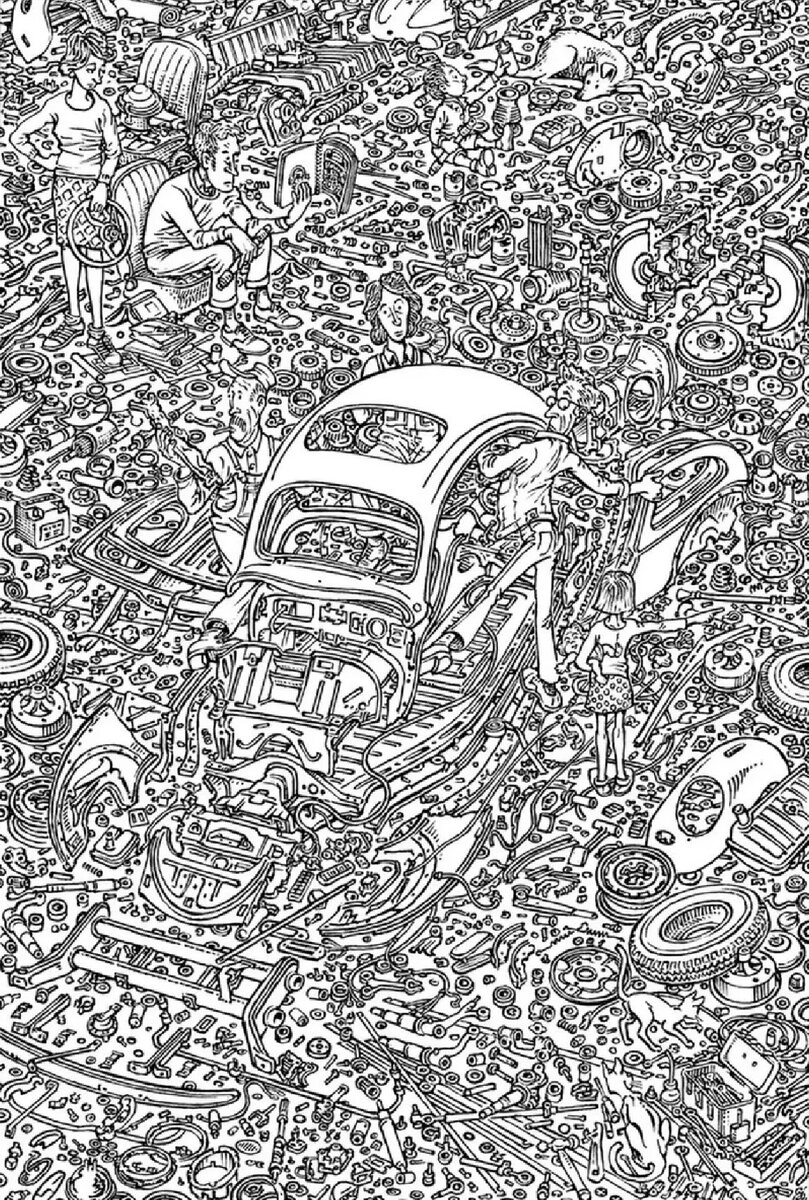Друзья, всем доброго утречка и хорошей недели!☀️ А чтобы развеять вашу скуку, я подготовил для вас интересное задание. На картинке ниже, с одной стороны, мы видим свалку с разобранным автомобилем посередине и разбросанными вокруг деталями. Но если присмотреться, то мы увидим на ней людей и животных. Рассмотрите данную картинку внимательно и напишите в комментариях сколько увидели людей и животных? Изучите комментарии других, возможно вы чего-то не увидели😉 Просьба не выкладывать обведенные ответы)) дайте другим тоже получить удовольствие от задания.😉 Если задание понравилось, не забудьте жмякнуть ЛАЙК!👍