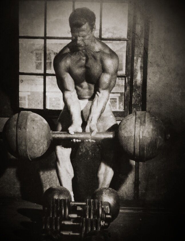 Всем привет, господа атлеты! Почему Гримек, по моему мнению, один из последних бодибилдеров который не принимал стероиды? Ну потому что в то время их попросту не было. Впервые искусственный тестостерон был получен немецкими учёными в 1935 году. И это были только опытные образцы из животных. А вот первые стероиды стали применять только с 1952 года в тяжёлой атлетике. Джон же закончил свою карьеру в 1949 году не побежденным! Более того он выиграл чемпионат Мистер Вселенная у самого Стива Ривза. В 1936 Гримек стал чемпионом США по тяжелой атлетике в тяжелой весовой категории и был включен в Олимпийскую сборную. Олимпиада проходила в Германии в этом же году где он занял только 9 место из 13. Но Джон был самым лёгким из 13 тяжей. Антропометрические данные: Рост 172 см Грудная клетка 119 см Голень 43 см Соревновательный вес 90 кг Талия 79 см Бицепс 44 см Бедро 63 см Силовые показатели Джона, с учётом небольшого веса, а также того, что он не употреблял стероидов: становая тяга