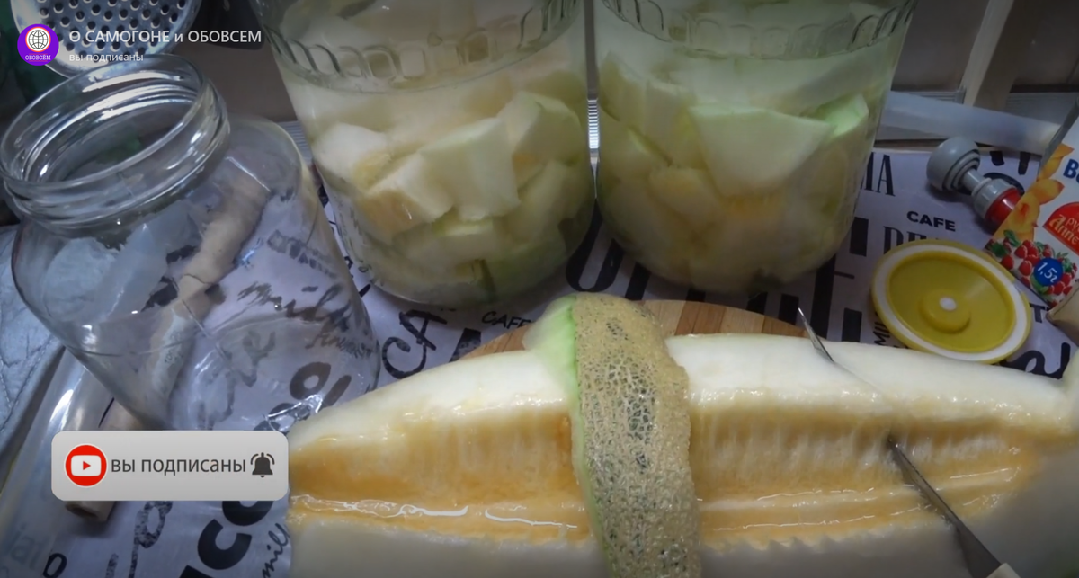 Здравствуйте, мои уважаемые подписчики и гости канала О САМОГОНЕ и ОБОВСЕМ. Надеюсь, гости тоже подпишутся и будут активно комментировать. И, самое главное, будут делиться своими проверенными рецептами, которые с удовольствием сделают многие. Сегодня для вас рецепт дынной настойки. Такой напиток очень нравится милым женщинам. Называется настойка " Веселящая дынька". Нам потребуется примерно 700 грамм спелой ,вкусной и самое главное, сильно ароматной дыни. Только мякоти, потому как кожу мы снимем и в настойке использовать не будем. Дыню режем на кусочки, укладываем в емкость. Заливаем спиртовой основой крепостью 45% в количестве 750 мл. Добавляем щепотку корицы и ванилина, кладем 1/2 чайной ложки меда. Ставим на вакуум и убираем в темное место на неделю. По окончании настаивания вскрываем емкость, процеживаем и фильтруем напиток. Фильтрация такого продукта совершенно не утомительна и быстра. Теперь настойку нужно убрать на отдых, вкус и аромат стабилизируется. Настойка полностью стан