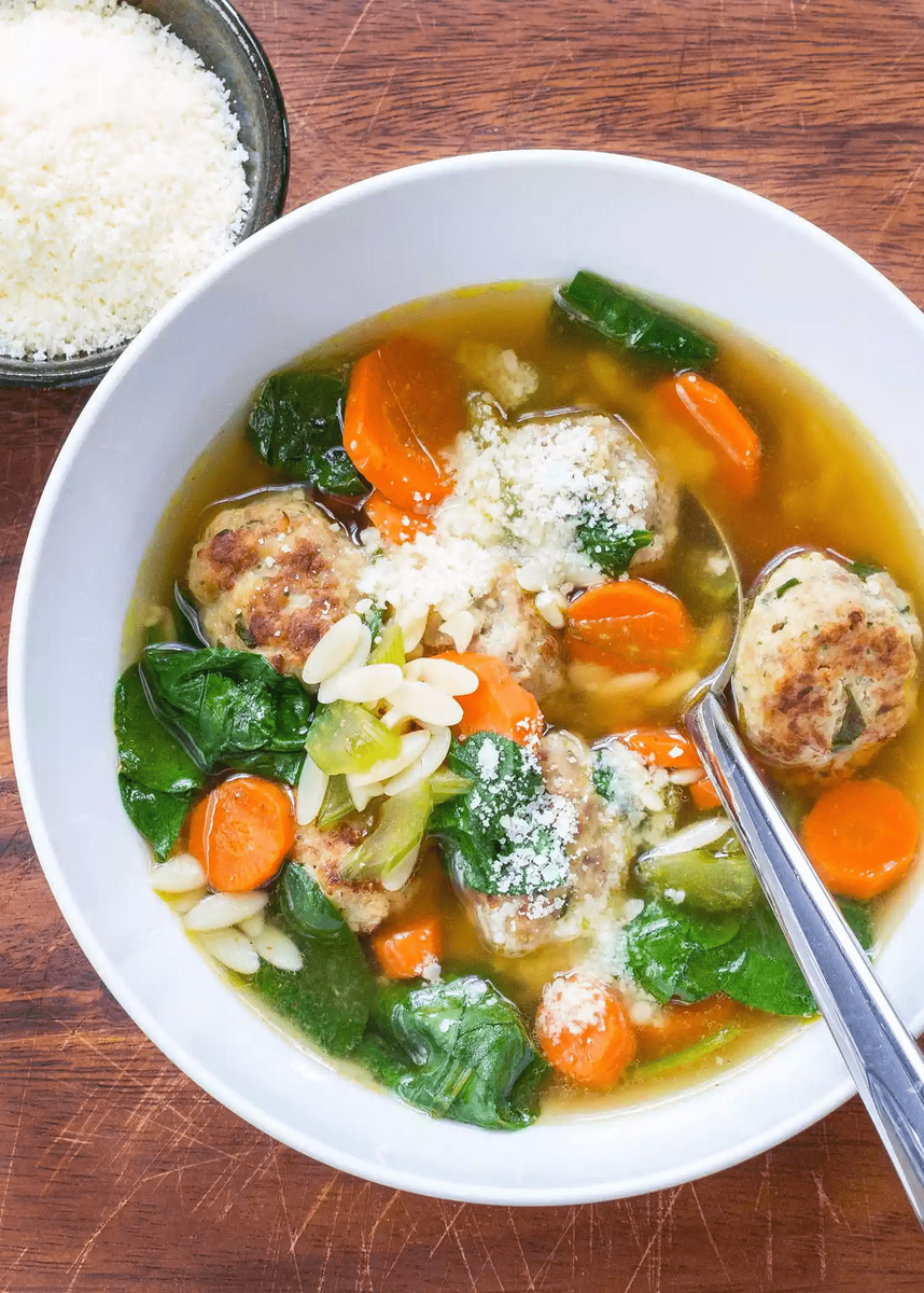 Суп с фрикадельками из индейки, шпинатом и орзо. Вкусное и полезное для здоровья блюдо