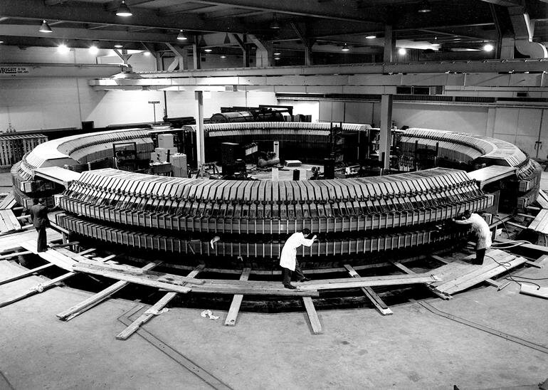 В остальном же бублик смотрелся достаточно эффектно. Вблизи было видно, что он набран из отдельных сегментов, к каждому из которых ведут многочисленные жгуты бронированных кабелей и пучки трубопроводов, обильно утыканных задвижками с колёсами-кремальерами и ящиками с измерительными приборами. Часть трубопроводов были покрыты густым слоем инея – со стоящих рядом серебристых автоцистерн с надписью «ЖИДКИЙ АЗОТ» белыми буквами на голубой полосе в ёмкости, где помещались сверхпроводящие обмотки «батута» закачивались целые озёра сжиженного газа при температуре 77,4 градуса по шкале Кельвина. Димка знал, что это только первый, самый длительный этап операции. Вслед за азотом последует жидкий гелий, но это произойдёт уже непосредственно перед запуском – если продержать эту чертовски холодную (4,2 по Кельвину, это вам не жук чихнул!) и к тому же сверхтекучую субстанцию в баках слишком долго, потери дорогостоящего газа будут огромны.