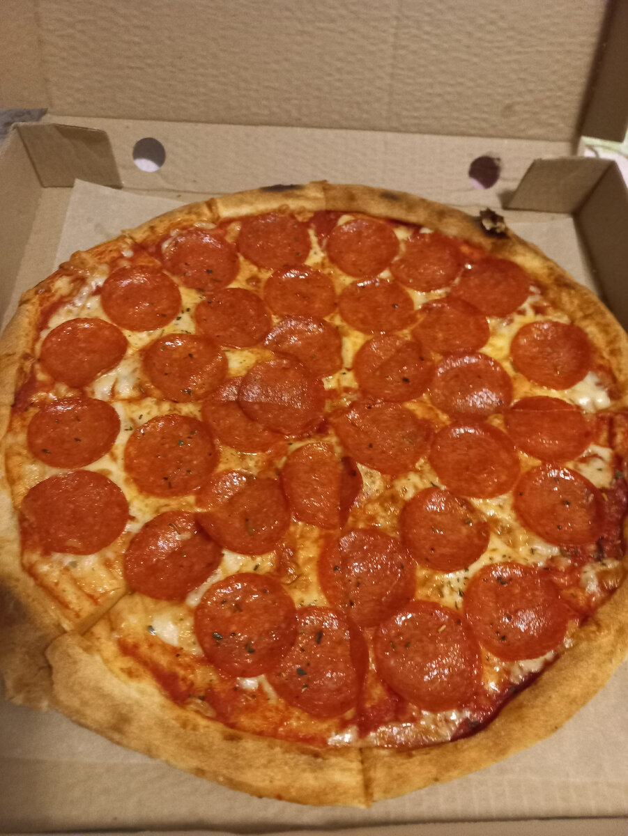 Всем всем привет ) на календаре 19 марта , воскресенье . отличный выходной день . Правда погода уже с утра начала портиться . Небо затянуло тучами , подул ветер , а потом и снег пошел , сначала понемногу , а потом большими новогодними хлопьями . Конечно это красиво , но совсем некстати . Настрой и гардероб уже совсем весенний , а тут вдруг снег с холодным ветром и еще обещают резкое похолодание . Ну а утро началось прекрасно , с пиццы Пепперони на завтрак . Пиццу я и сама делаю часто , но готовая иногда приятнее , тем более у нее такое вкусное тесто , а не только начинка . Начинку дома можно сделать вкуснее , а вот тесто пока не могу повторить , хотя в общем то уже давно нашла свой рецепт . ну и любимый кофе Lavazza , средней обжарки и помола , вкусный и ароматный А за окном продолжает падать и кружится снег . На улицу все равно хочется выйти подышать , поэтому прогулялась в магазин , хотя особо ничего не нужно было . Снег уже надоел за зиму , даже снимать особо не хотелось В