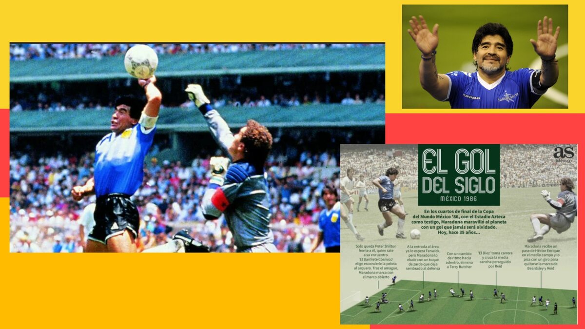 Сначала Марадона сотворил скандальный гол, забив его … рукой! Позже он назвал это “рукой Бога” и местью зловредным англичанам за Мальвины!