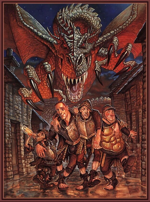 Я обещал вам много Пратчетта? Обещал! А обещания надо исполнять, но сам я могу и не справиться, поэтому я просто вынужден позвать: «Стража! Стража!». Итак, мы возвращаемся на улицы славного города Анк-Морпорка. Прекрасные, просторные улицы… Ну, или не очень просторные и совсем не прекрасные, особенно ночью. Анк-Морпорк, он такой — в первую очередь он славен тем, что он… Анк-Морпорк. И во вторую тоже. И вообще во все очереди. А еще в нем есть стража, и даже — кто бы могу подумать! - ночная стража. Зачем нужна стража в городе, где преступления узаконены и Гильдии Убийц и Воров официально платят налоги в казну? Ну, как… Должна же в городе быть стража! Так ведь правильно, да? Ну, вы поняли… Несмотря на то, что я начал обзоры книг о Плоском Мире с цикла о Мокрице фон Липвиге, именно «Стража! Стража!» стала «первой ласточкой», обозначившей поворот в творчестве Пратчетта. До нее «плоскомирные» книги были пародией на вымышленные миры — то есть на штампы и стереотипы фэнтези. Первый роман о Но