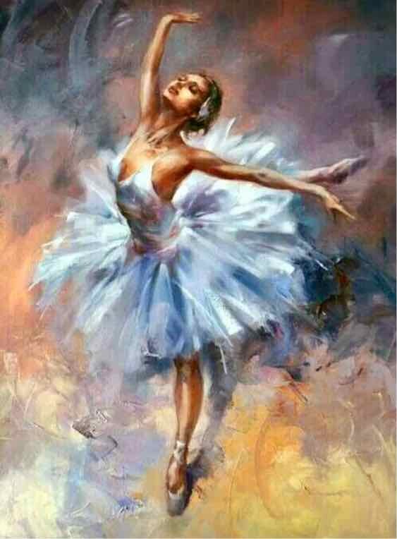 В самом центре холста грациозно «танцевала» балерина в пышной юбке и веночке на голове.