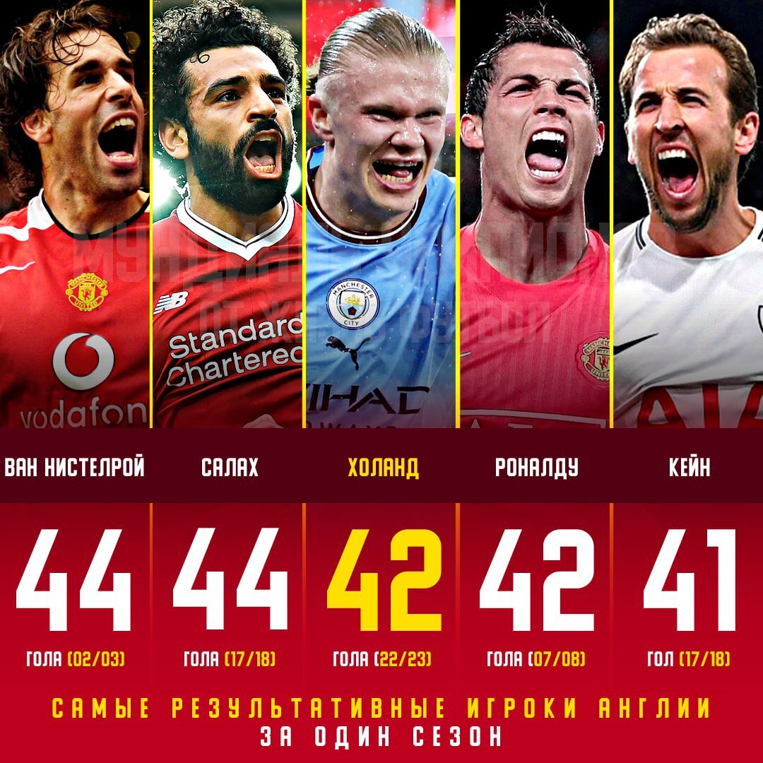 👏 Эрлинг Холанд стал шестым игроком в истории АПЛ с 40+ голами во всех турнирах сезона 🔝 Ещё 3 гола в любых турнирах и Эрлинг станет единоличным рекордсменом