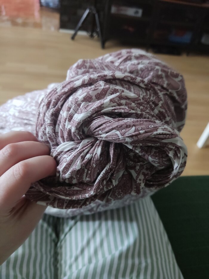 Думаю, все сталкивались с ситуацией, когда при стирке пододеяльник съедает все остальное белье, но такая остросюжетная история приключилась со мной впервые. Итак, после отжима мы имеем такой хинкали: Поначалу я просто посмеялась: мало ли, бывает! Но потом... На этом этапе большинство предлагало сделать кесарево. Но это мой последний комплект, купленный в Икее! Принято решение: будем рожать сами! Я телепала этот кулёк путем многократных потряхиваний и распутываний. Тратила нервы, качала мышцы, переживала за роженицу в конце концов! (Чтоб не порвалась) Сначала получился крендель. Потом барашек. И вот наконец первые подвижки! Когда раскрытие было полным, и пошли потуги, начали принимать первенца! Первенец повешен сушиться, продолжаем тужиться! Подведем итоги. Роды продлились ровно 1 час 10 минут. Время рождения: 16: 29 Три девочки: простыня, наволочка, наволочка. Вес при рождении не замеряли. Выводы: если собака отгрызла кнопки на пододеяльнике, и нет возможности его застегнуть - стирайте