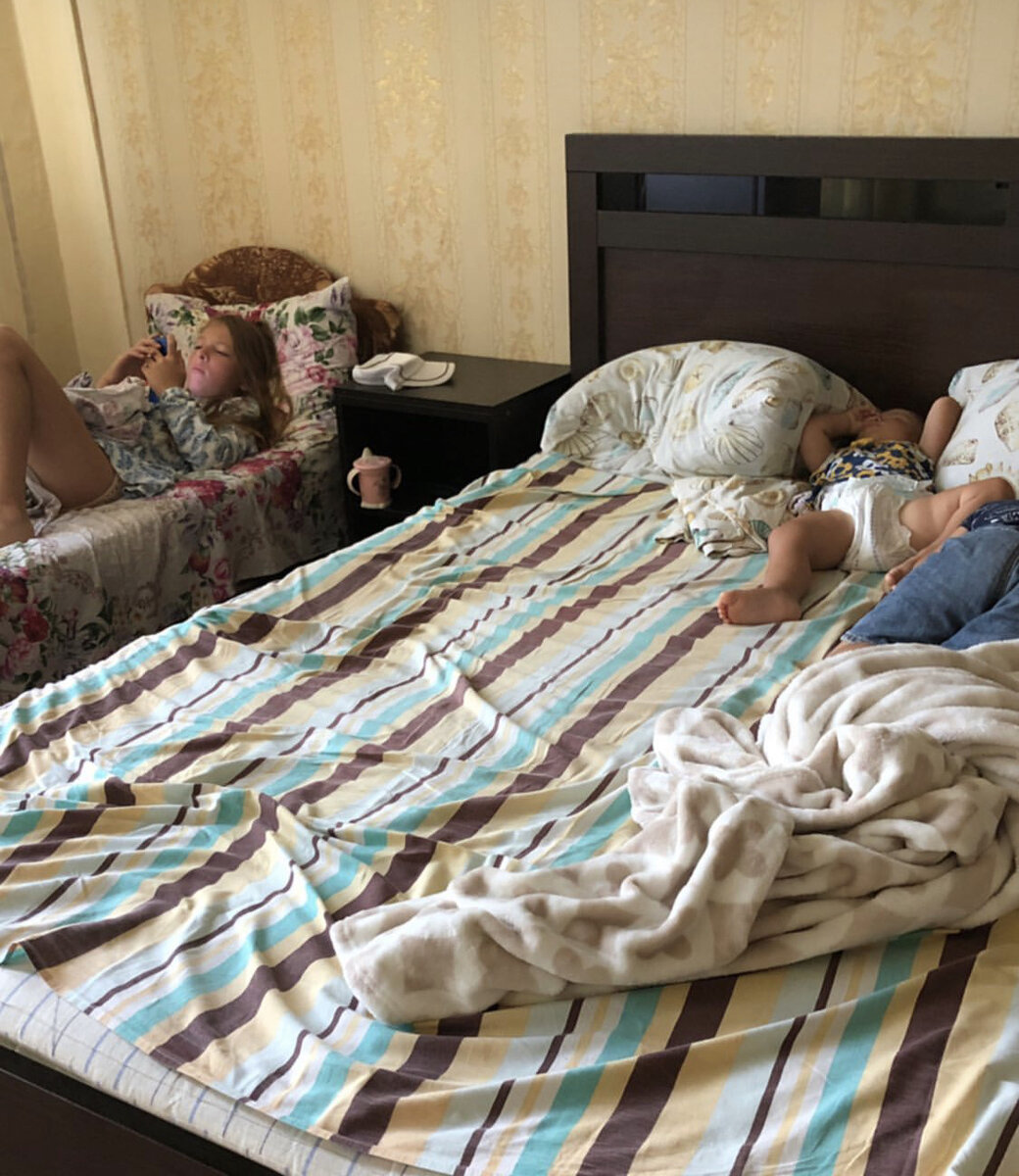 Часть 8. Про наш отдых с детьми в 2022г. Начало в моем профиле! Зашли мы и «ах-нули». Муж не так уж сильно. У него ожиданий не было. А вот моя фантазия со мной серьезно пошутила! Каждый номер стоил 2200. Включал номер 2-3 кровати. Дело шло к концу августа - конец сезона. Я смотрела на это все и вспоминала шикарную квартиру в Анапе за 2000 рублей. И не понимала - почему так дорого? Изначально мы сторговались до 3500 за обе комнаты, но увидев их воочию - я понимала, что это все равно «лишка»! Что меня особо огорчило? Постоянный полумрак. Шторы раздвигать не рекомендовалось. Чтобы не было жарко💁🏻♀️. Кондиционер не справлялся. В комнате было очень влажно. Постель мокрая. Волосы не просыхали. Вещи тоже. Но это больше, наверное, относится к климату, а не гостевому дому. 2.Следующий недостаток- это старый ковёр на который не хотелось вставать босыми ногами. Там вообще всё было старое. В ещё много чего сломано. Вот ю, например, замок в туалет. Я пару раз застревала. 3.В объявлении на са