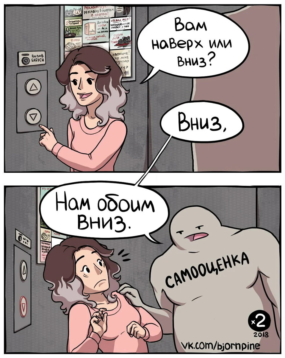 Привет, дорогой друг! Помните, какими уверенными в себе мы были в детстве? Когда разрешали себе съесть за раз всю конфетницу, и ведь при этом, все умилялись нашим пухлым щечкам! А как мы не боялись хотеть для себя все самое лучшее и упорно шли к своей цели… пока мам отдирала нас рыдающих от пола в магазине). Почему-то с возрастом мы начали загонять себя в рамки, оглядываться на других, а еще хуже – сравнивать себя с ними. Итогом всего это служит низкая самооценка. Если ты тоже часто сомневаешься в своих силах и боишься обратить на себя внимание – сегодняшняя статья как раз для тебя! Сегодня я собрал 7 комиксов про самооценку. 7 поводов посмеяться и прямо сейчас начать путь к любви и бережному отношению к себе! Приятного чтения и помни, ты у себя – самый лучший! Иногда, чтобы не впасть в уныние от самого себя стоит вспомнить все достижения и победы, которые с вами случались. Похвалить себя за сильные стороны. Главное – успеть это сделать до того, как проснется низкая самооценка. Автор М