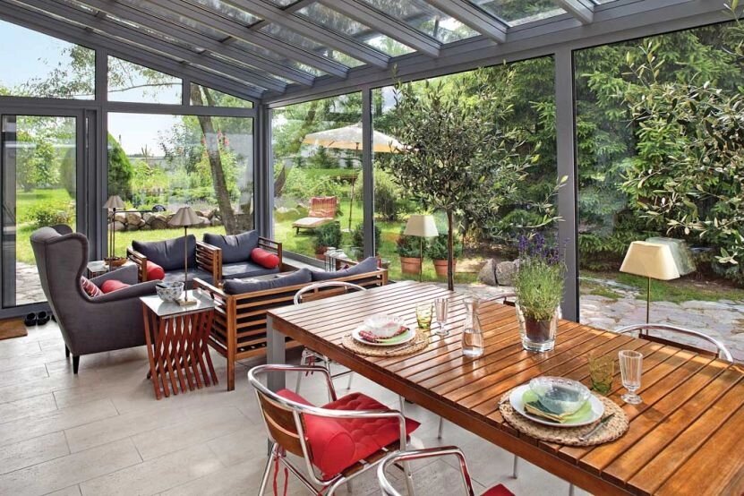 Место с историей: современный дом с нотками французского прованса и стеклянной верандой