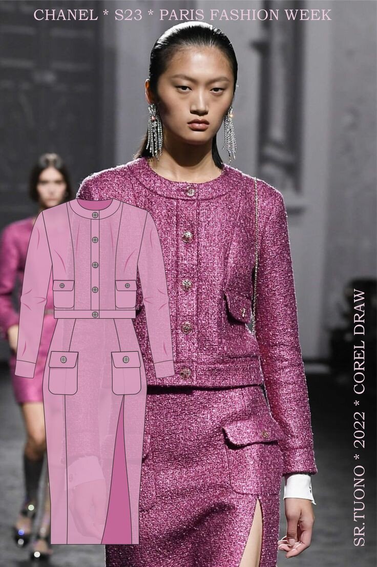 На что стоит обратить внимание, если захочется повторить, то это на то, что рельефы смещены к середине переда, причём по всей линии, начиная с плеча и до самого низа. По моему мнению, что это сделано для того чтобы накладные карманы доходило точно до этих рельефов, то есть вот такая конструктивная задумка до мелочей , а вот эти мелочи и есть то самое, чем отличает одну модель, от другой, например от той, где рельефы будут на месте ,а карманы заходят на них. Вот если вы ищите мастера, а многие в поиске, я знаю, то вот такое хороший мастер заметит сразу! Поверьте, многие могут просто не обратить внимание на такую "мелочь"и это будет потом сказано в своё оправдание,что это именно мелочь .Единственным оправданием и то вначале обсуждения!!! может быть только одно. Дело в том, что такой приём, как смещение рельефа может подойти не каждому, да вот такая ситуация может быть и это надо говорить сразу, так как если я как мастер хочу, чтобы вещь реально шла клиенту, то я должна разобрать по полочкам фигуру клиента и модель, совместить это в голове, а потом всё подробно объяснить. Конструктивные линии это то, что влияет на визуальное восприятие вашей фигуры и насколько они будут правильно расположены с учётом этой фигуры, настолько вещь будет делать вас идеальнее, потому что вещи, я об этом пишу уже в какой раз , должны сидеть правильно и ни в коем случае не подчёркивать ваши недостатки! Думаю, кому интересна тема, сразу подумали, а в каких случаях не желательно смещать? Вот тут я бы хотела почитать ваши варианты в комментариях, а потом я поделюсь своим опытом) Кто там хотел курсы, вот начинаем) У меня в голове уже несколько вариантов есть, я даже визуально представила)